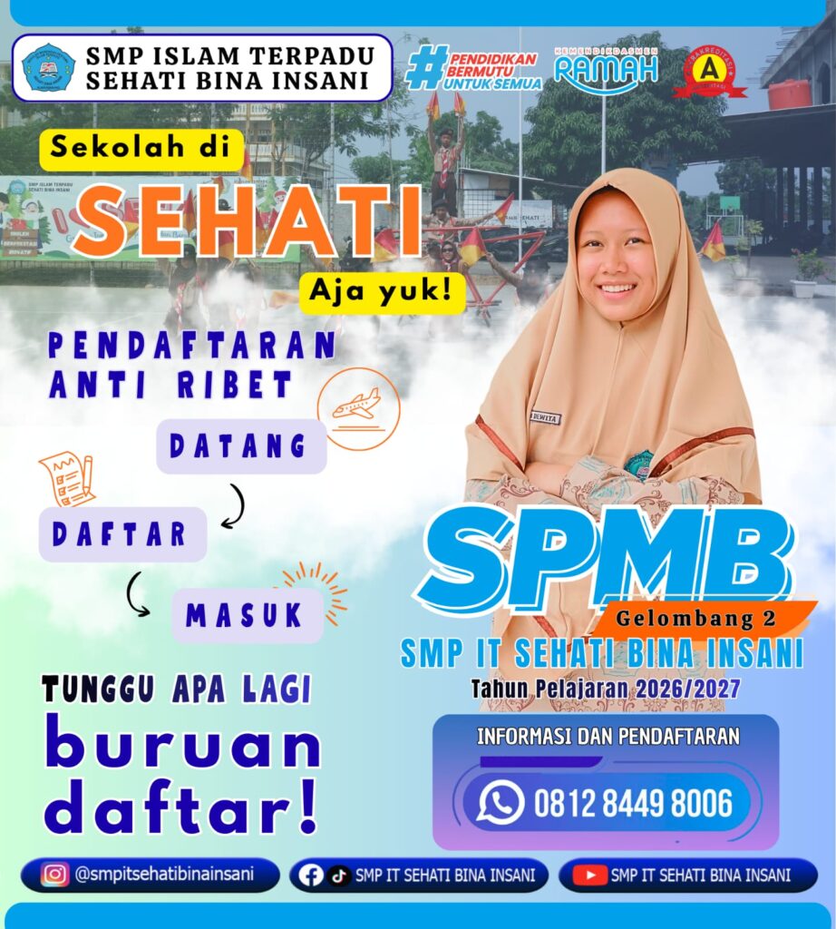 SPMB SMP IT Sehati Bina Insani adalah layanan pendaftaran peserta didik baru yang dilaksanakan secara profesional, transparan, dan mudah diakses. Sekolah berkomitmen menghadirkan pendidikan berkualitas yang mengintegrasikan ilmu pengetahuan, teknologi, dan nilai-nilai Islam.